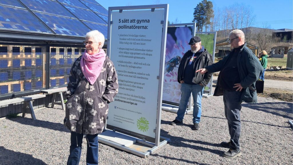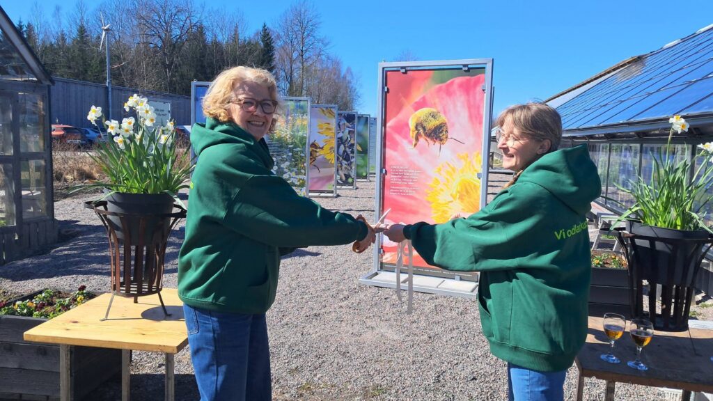 Efter föreläsningen invigdes utomhusutställningen Surr! genom en bandklippning. Solparkens verksamhetschef Lottie Winnerhed utbringade en skål för samarbetet mellan Pollinera Sverige och ETC Solpark.